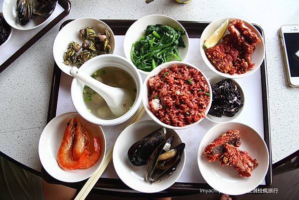 這幾天下來也沒少吃。但聽老闆這一說,才知道這紅糟炒飯是他的發明,配上涼拌海菜的吃法,真的非常好吃!