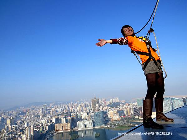 沒有了下午茶,只是登塔又嫌有些無趣,所以在朋友的強力推薦之下,我們鼓起勇氣報名 由AJ Hackett團隊設計的- 澳門塔空中漫步x版。