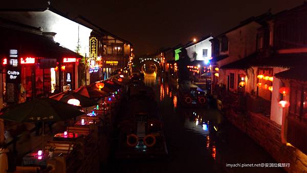 山塘街是縮小版的江南水岸風情,白屋黑瓦搭配高掛的紅色燈籠,在夜色中到映在水中,繁華中帶點復古。老街上有餐廳,有特色商店,有酒吧,有茶館也有青年旅社。