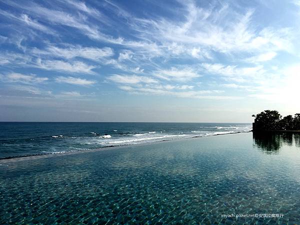 最令人驚豔的非眼前的"無邊際泳池"莫屬,一路延伸到岸邊,與海岸連成一線。