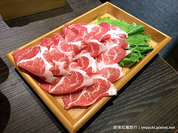 不是非要伊比利豬不可的朋友,也可以選擇梅花豬肉鍋,價位稍微低一些。但肉質卻不會大打折扣。大份的肉盤,適合食量大的朋友。搭配菜盤和關東煮,會非常的飽。火鍋就要搭配店內的日式醬油和金秸。淡淡的醬油味會帶出蔬菜的鮮甜。微酸的金佶與白醋,則可以挑起味蕾。